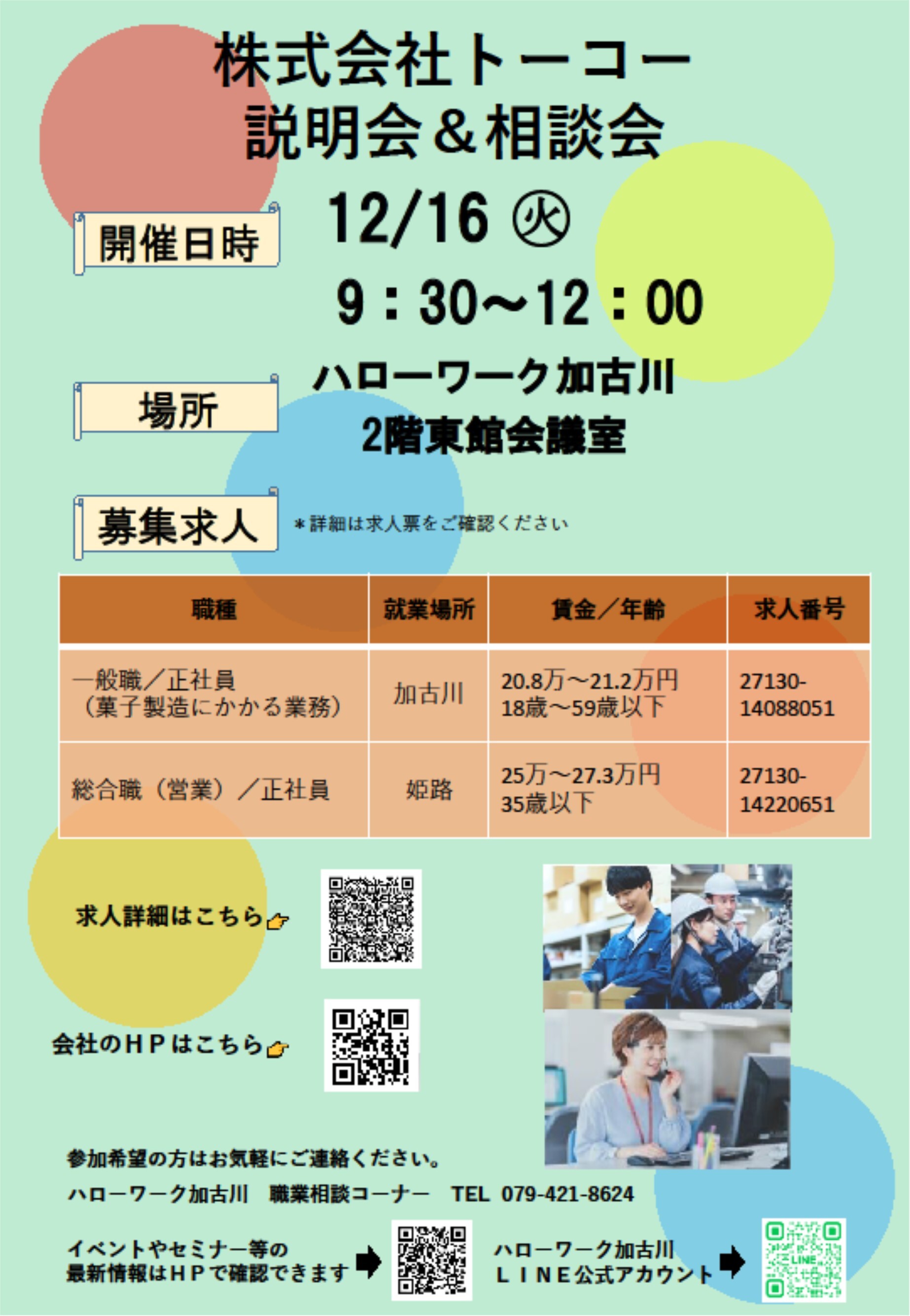 12月16日(火)加古川市ハローワーク主催『お仕事説明会』