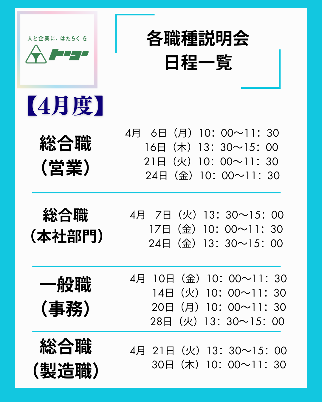 【4月度】各職種会社WEBセミナー開催日程一覧公開!