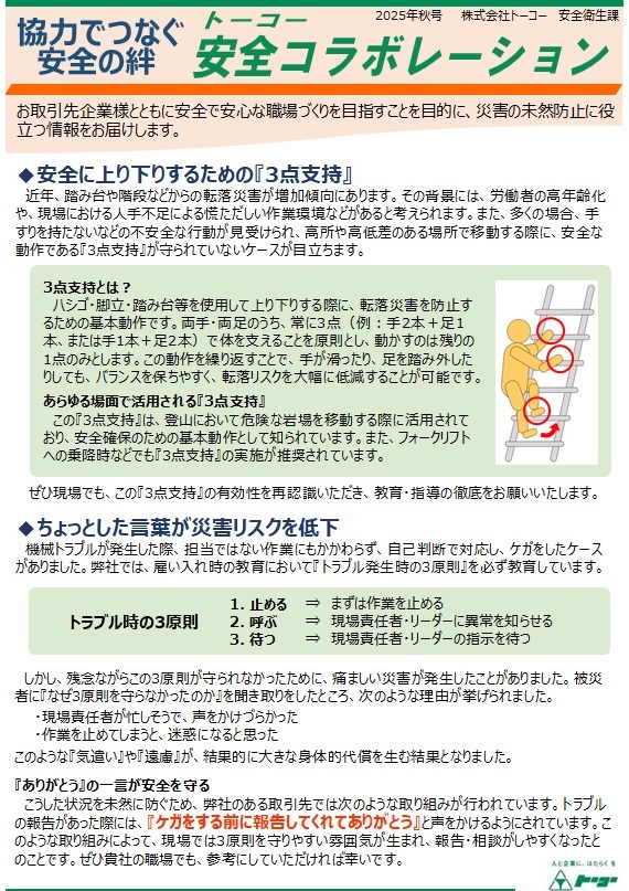 安全コラボレーション【2025年秋】|転落災害を防ぐ基本動作・機械トラブル時の災害を防ぐ取り組みのご紹介