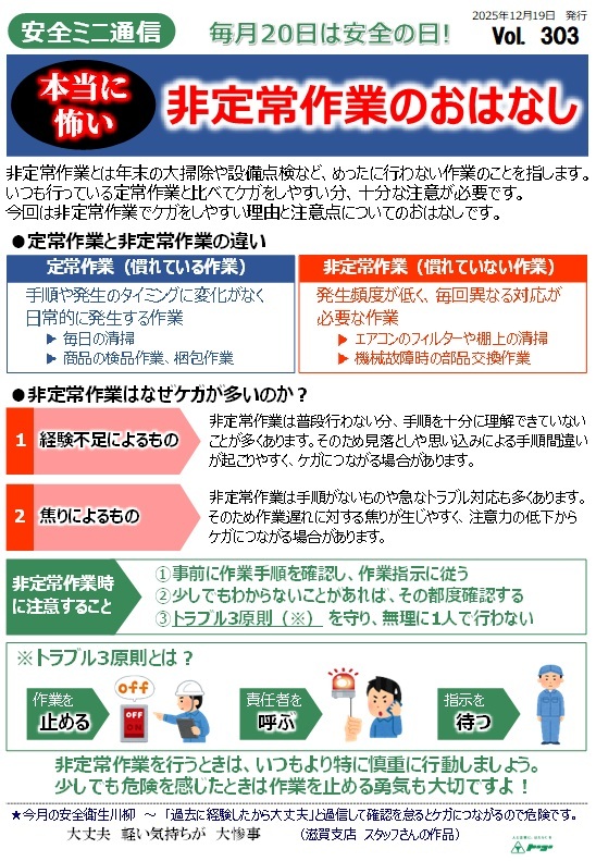 安全ミニ通信303号を発行しました(本当に怖い 非定常作業のおはなし)