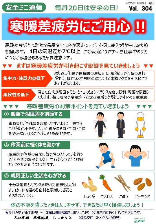 安全ミニ通信304号を発行しました(寒暖差疲労にご用心!!)