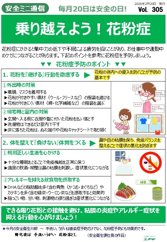 安全ミニ通信305号を発行しました(乗り越えよう!花粉症)