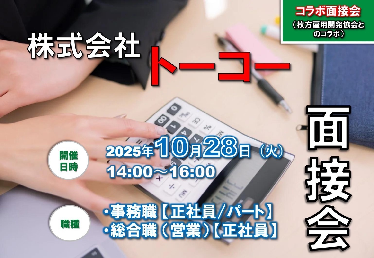 10月28日(火)枚方市開催! コラボ面接会参加!