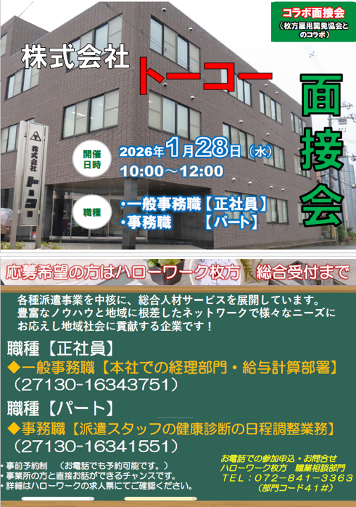 1月28日(水)枚方市開催! コラボ面接会参加!
