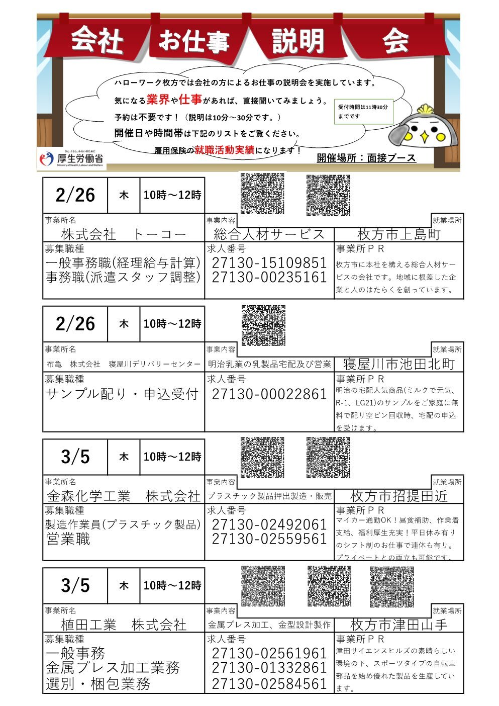 2月26日(木)枚方市ハローワーク主催『お仕事説明会』